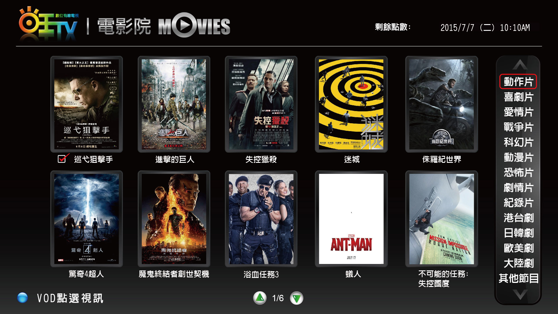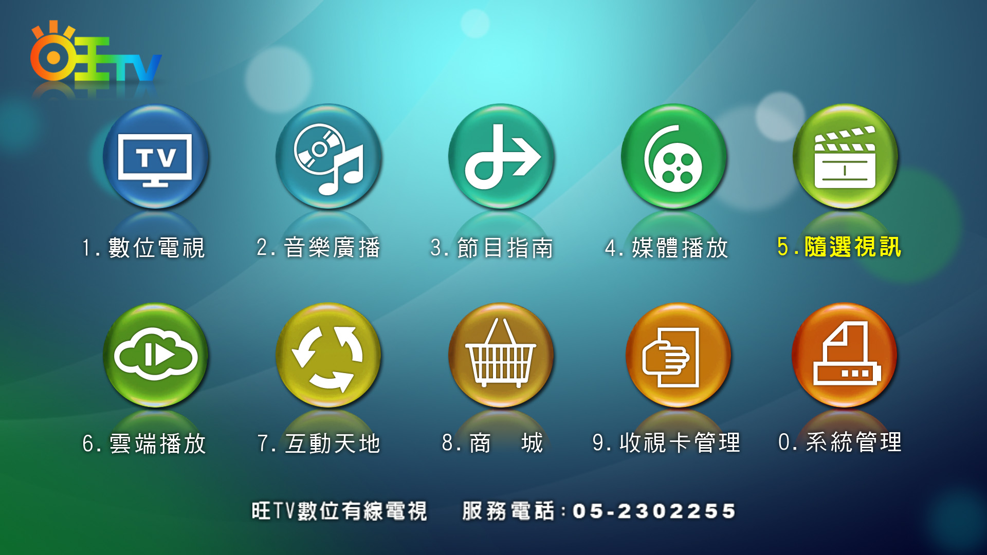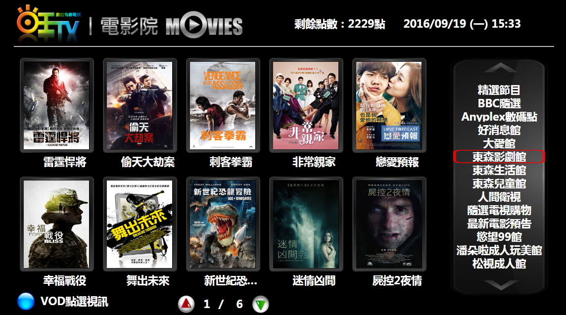 選擇「5.隨選視訊」,進入旺TV電影院。
