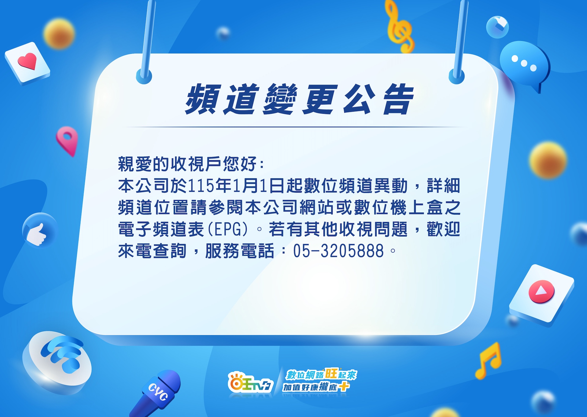 - 1月7日-頻道變更公告